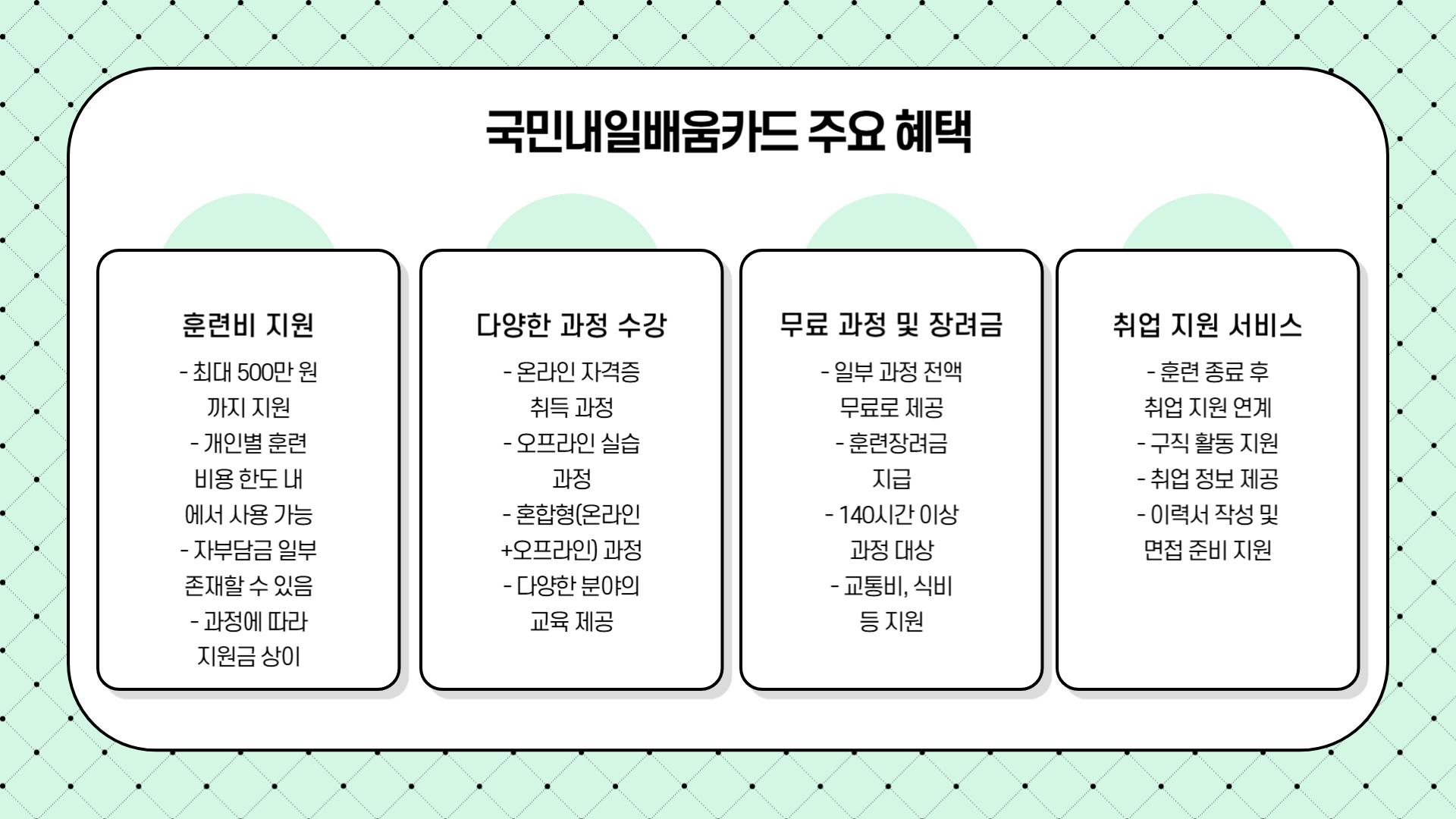 - 최대 500만 원 국민내일배움카드 훈련비 지원