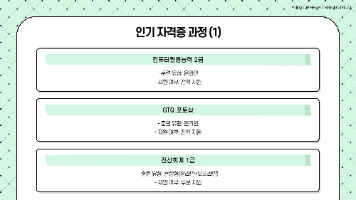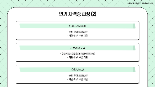 - 국민내일배움카드로 비용 부담 없이 학습 가능