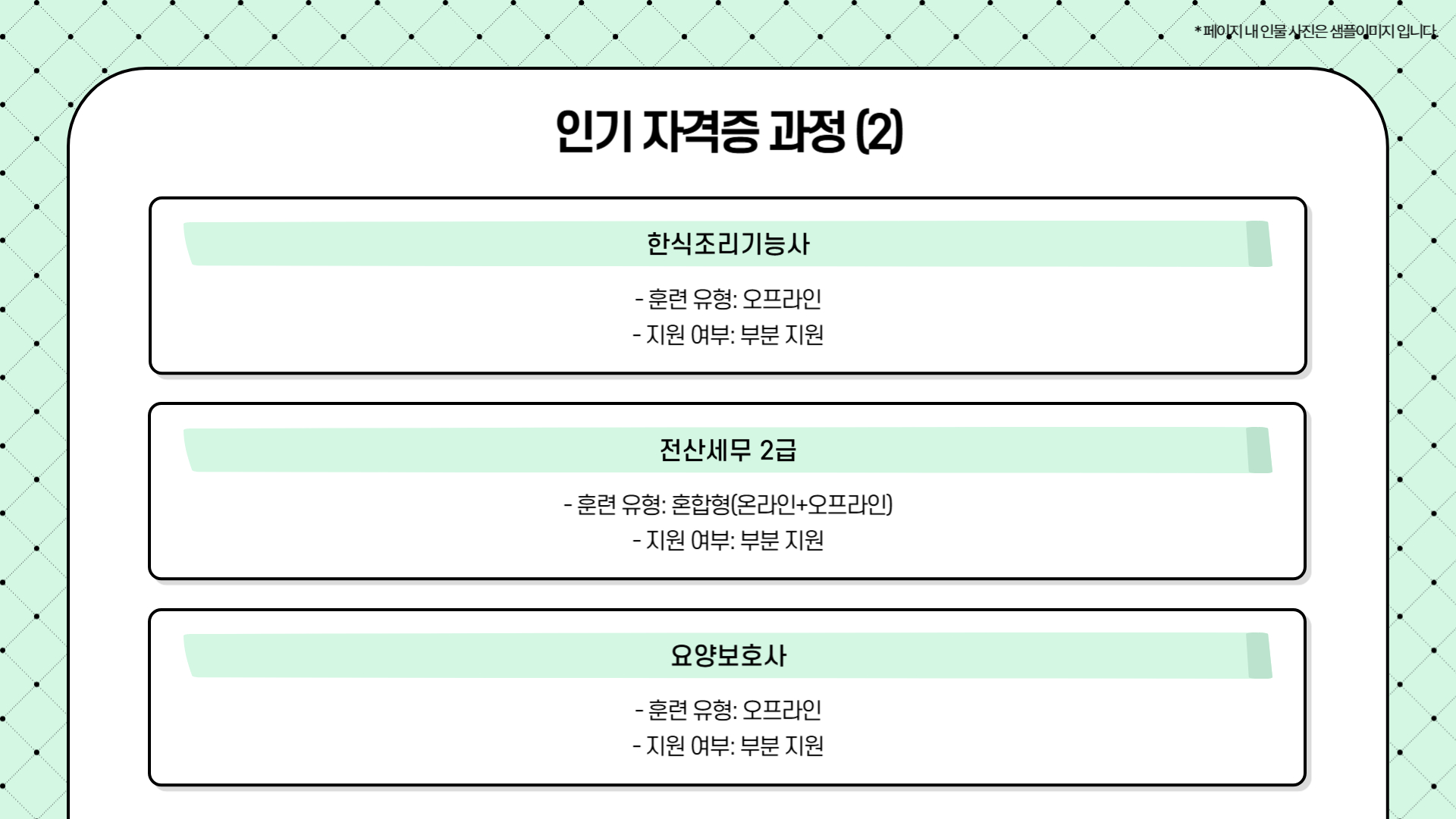 원하는 자격증 과정이 해당 카드로 지원되는지 확인해야 합니다.
