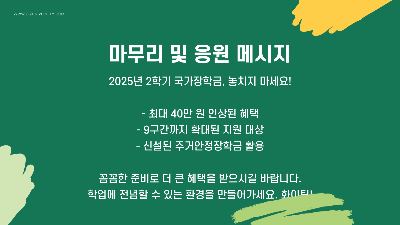 2학기 국가장학금 신청 시기를 놓치지 않고 대비하길 바랍니다.