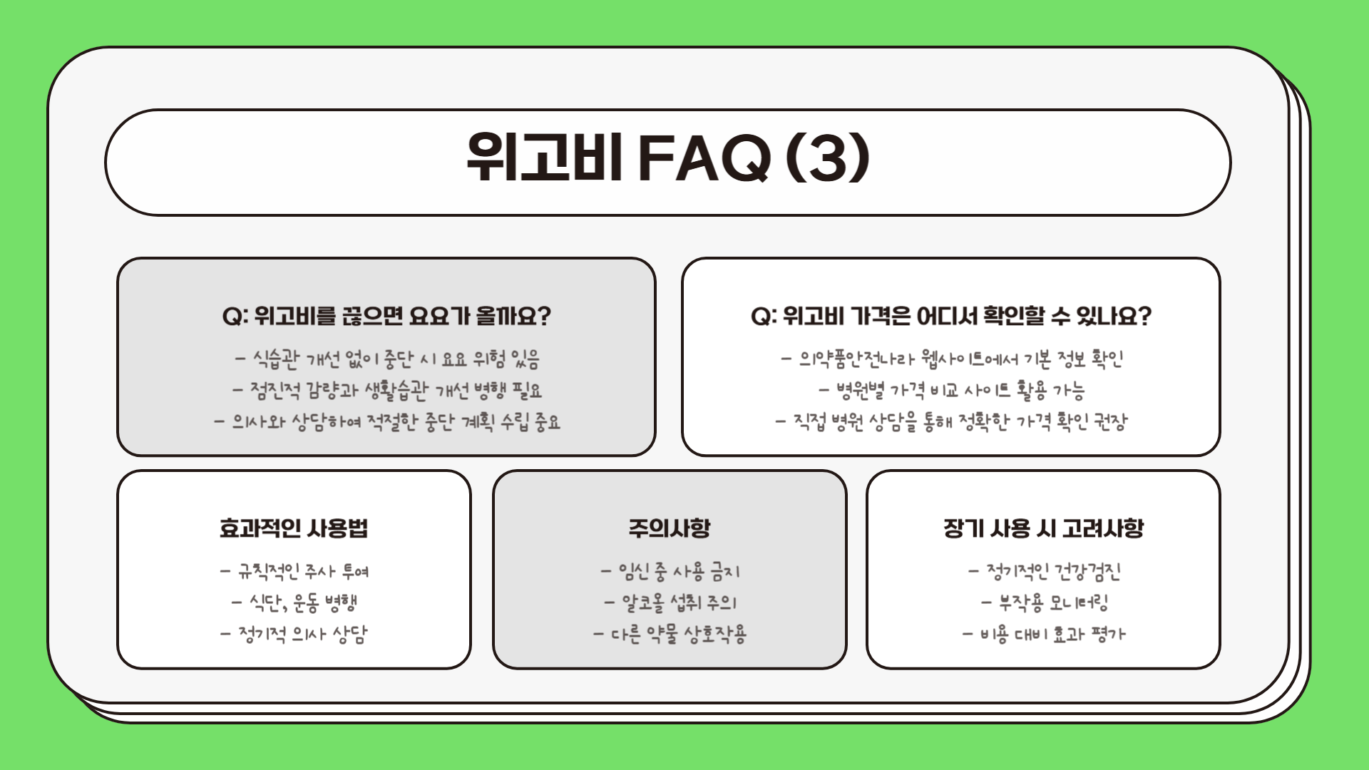 위고비는 단순한 다이어트가 아니라 생활 습관까지 함께 바꿔주는 체중 감량 도구입니다. 하지만 그만큼 책임감 있게 접근해야 하는 약이기도 해요. 여러분의 몸과 건강에 맞는 방법인지 꼼꼼히 확인하고, 믿을 수 있는 병원에서 상담받으세요. 위고비, 올바르게 사용한다면 분명 멋진 결과를 가져올 수 있어요. 궁금하신 점은 언제든 댓글로 남겨주세요!