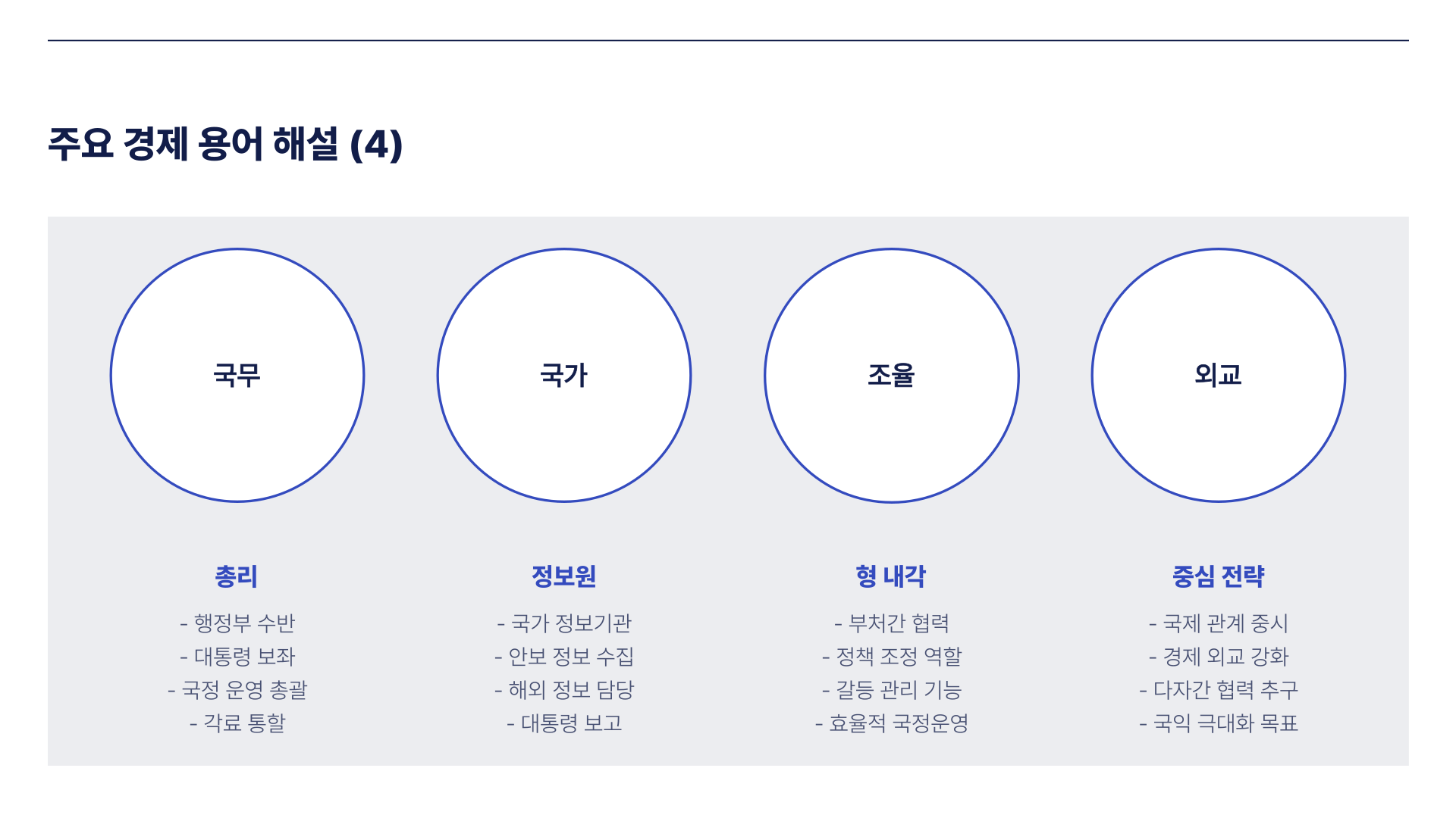 | 국무총리 | 대통령을 보좌하며 행정 각부를 총괄하는 국가 고위직 |