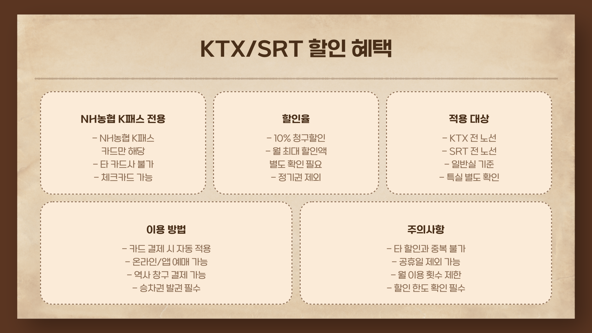 | KTX / SRT (농협 K패스) | O (청구할인) |