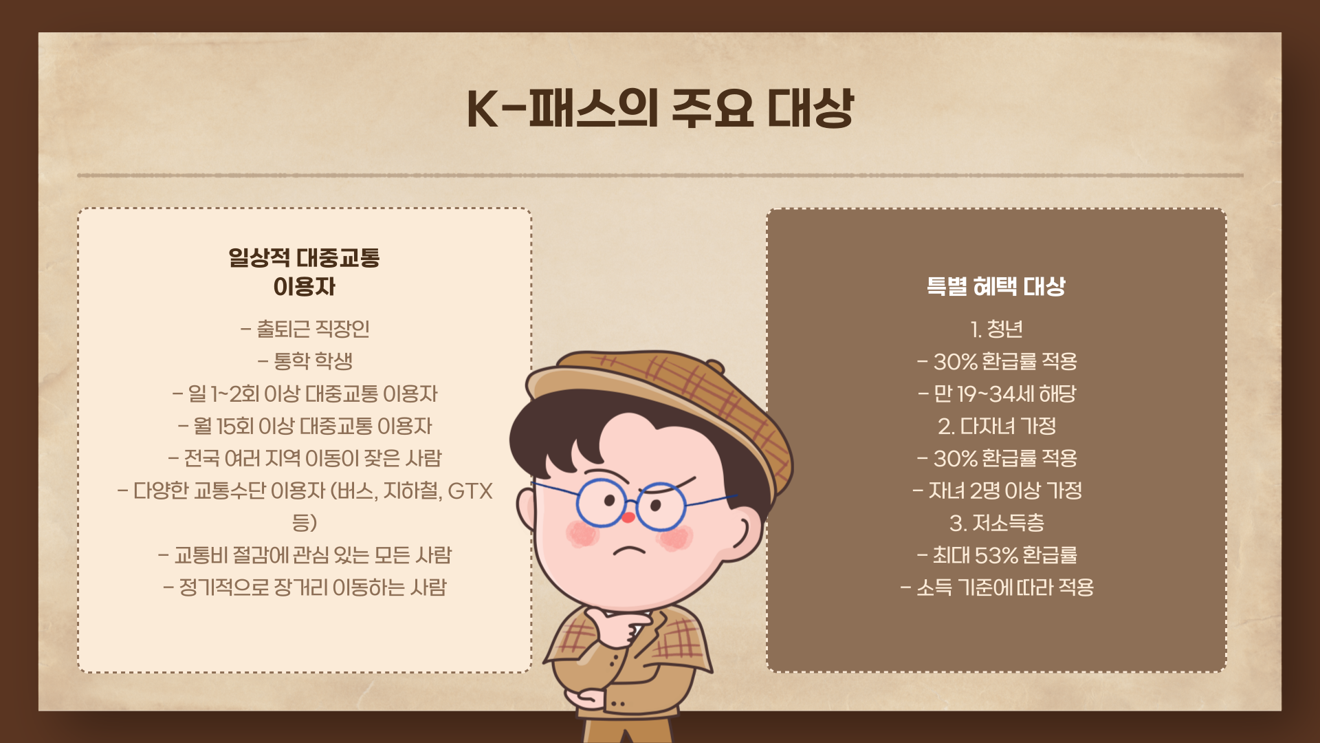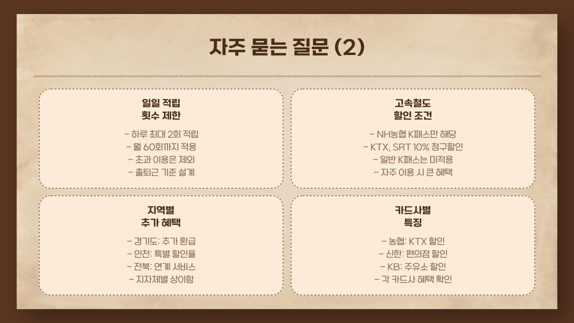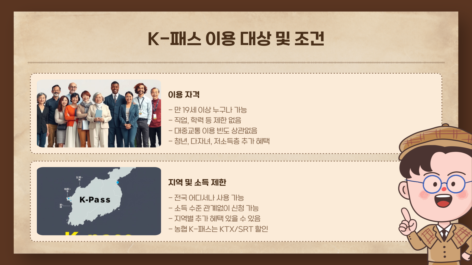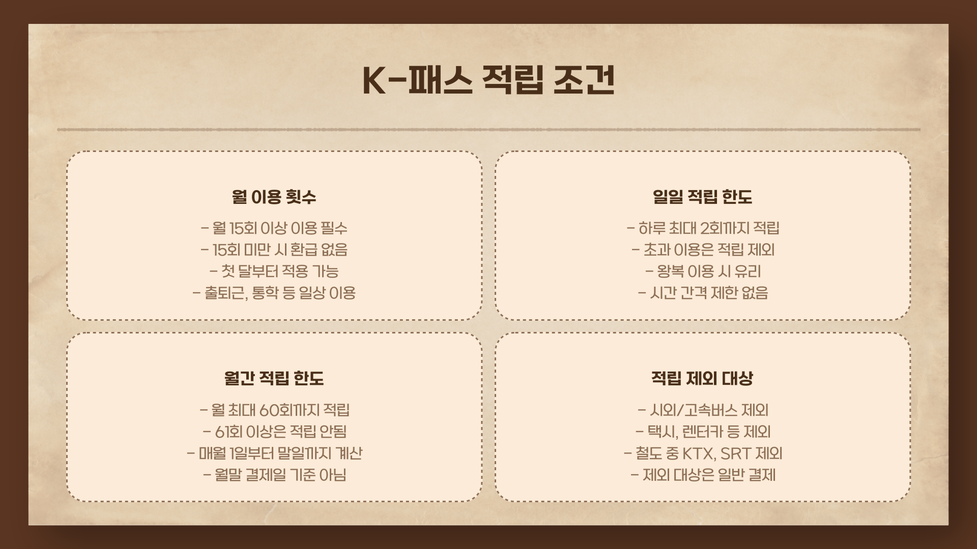 - 전국적으로 이동 많음 or 청년·다자녀라면 → K패스 추천