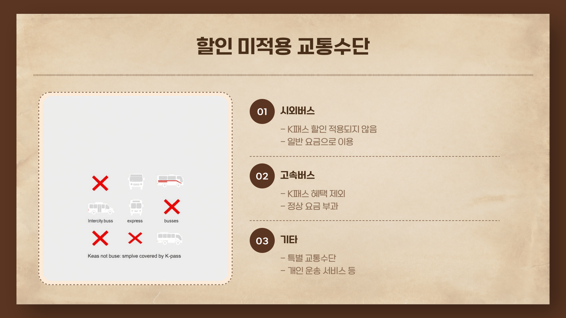 | 고속버스 / 시외버스 | X |