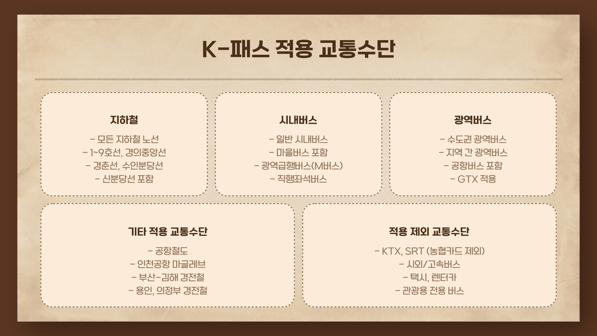 | 적용 교통수단 | 지하철, 버스, 광역버스, 신분당선, 공항철도 등 |