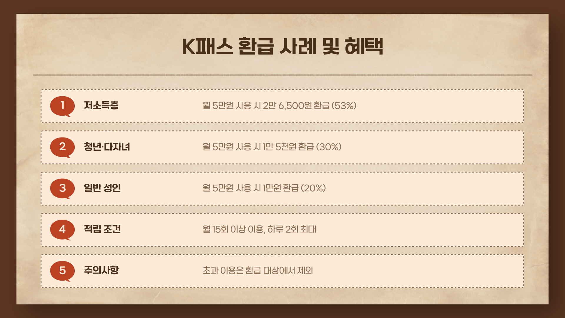 K패스는 할인 혜택은 일상 속 교통비 부담을 실질적으로 덜어주는 고마운 제도입니다. 저도 처음엔 반신반의했지만 매달 받는 환급 금액을 보고는 '왜 이제야 알았을까?' 싶더라고요. 특히 청년, 다자녀 가정, 저소득층이라면 꼭 신청해보세요. 여러분도 매일 타는 교통수단, 그냥 타지 마시고 K패스로 현명하게 절약하세요. 더 궁금한 점이 있다면 댓글로 남겨주세요!