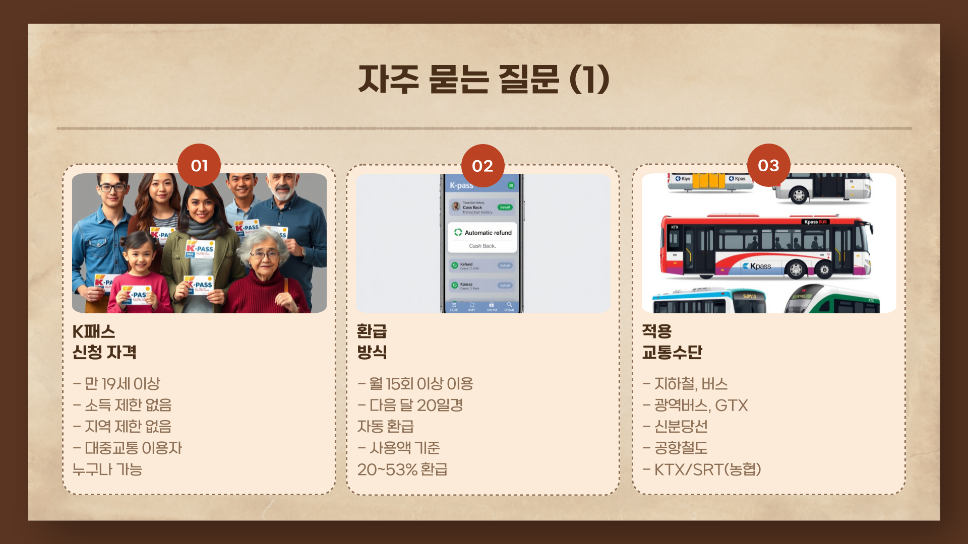 안녕하세요! 저도 매일 지하철과 버스를 타고 출퇴근하는 직장인인데요. 교통비가 은근하게 지출의 큰 비중을 차지하더라고요. 그러다 우연히 알게 된 것이 바로 K-패스입니다. 실제로 사용해보니 매달 몇 만 원씩 환급받을 수 있어 만족도가 매우 높아요. 오늘은 이 K-패스 제도가 무엇인지, 어떤 혜택이 있는지, 어떻게 신청하는지를 처음 접하시는 분들도 쉽게 이해할 수 있도록 정리해드릴게요.