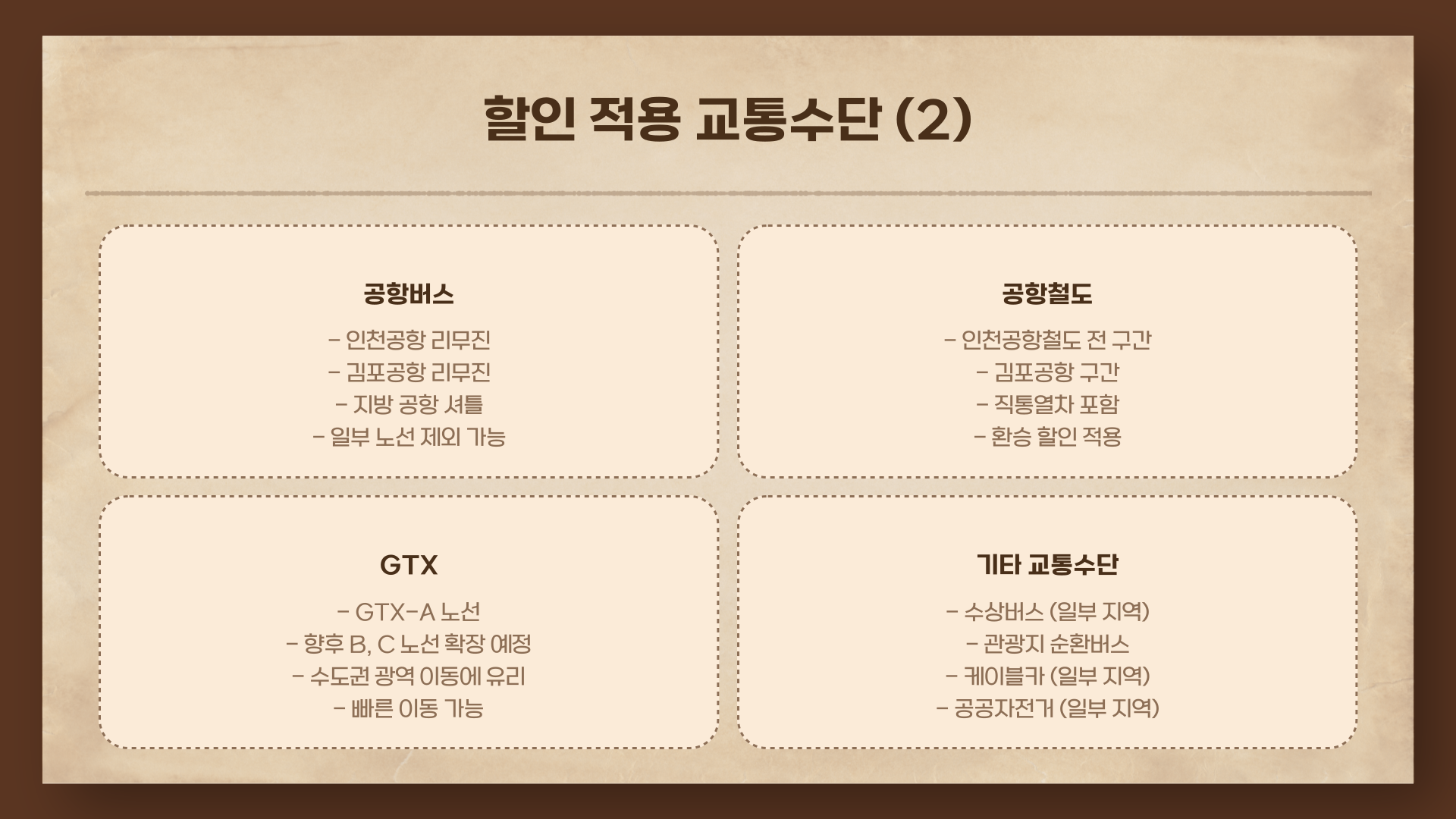 | 교통수단 | 적용 여부 |