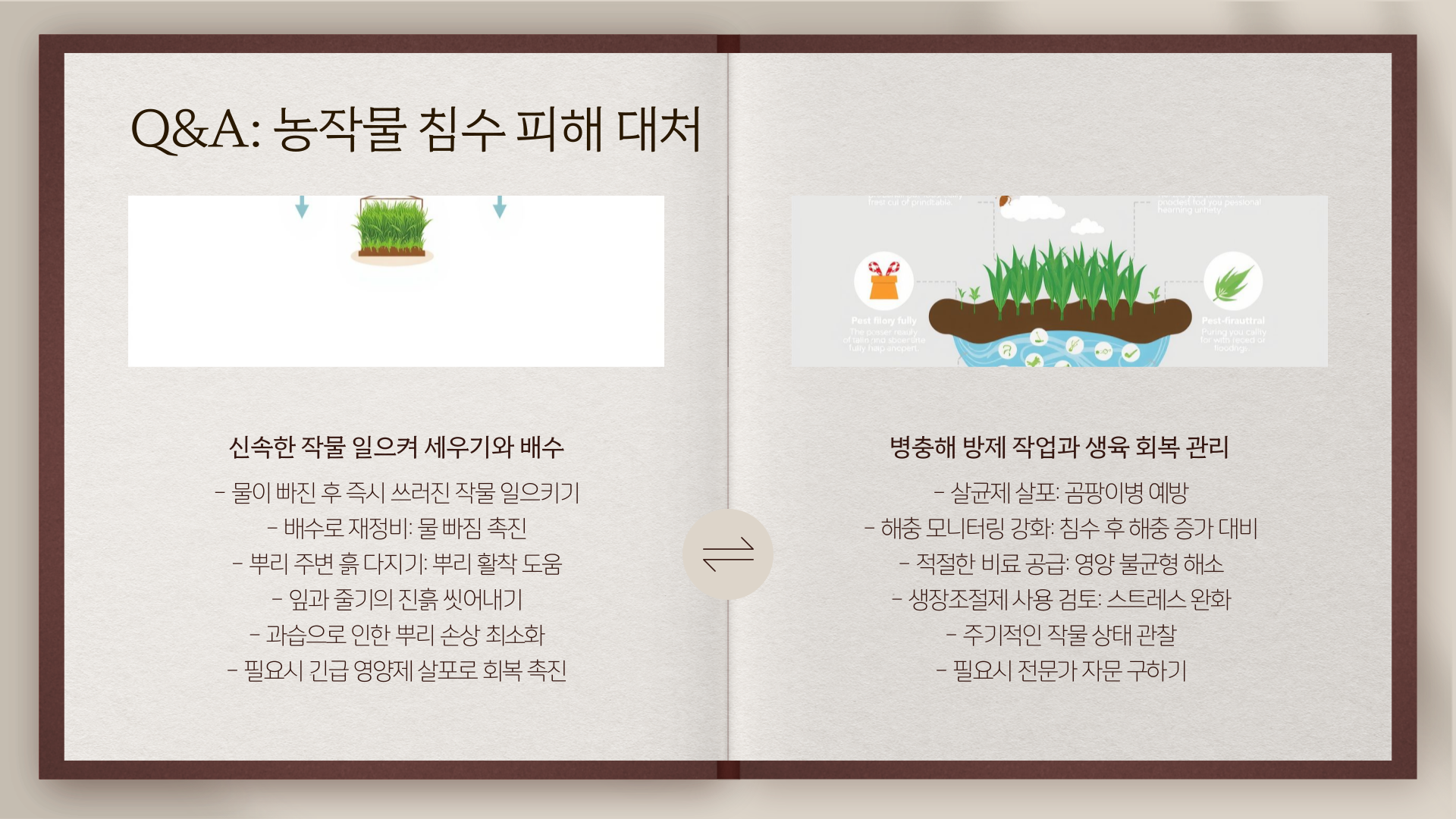| 침수 시 대응 | 신속 배수, 작물 재정비, 병해 방제 |