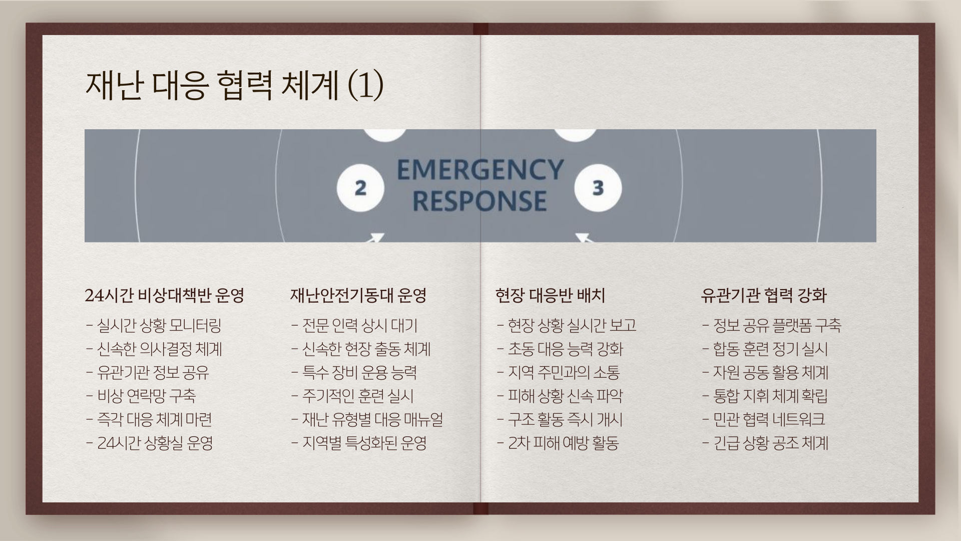 - 재난안전기동대 운영 및 현장 대응반 배치