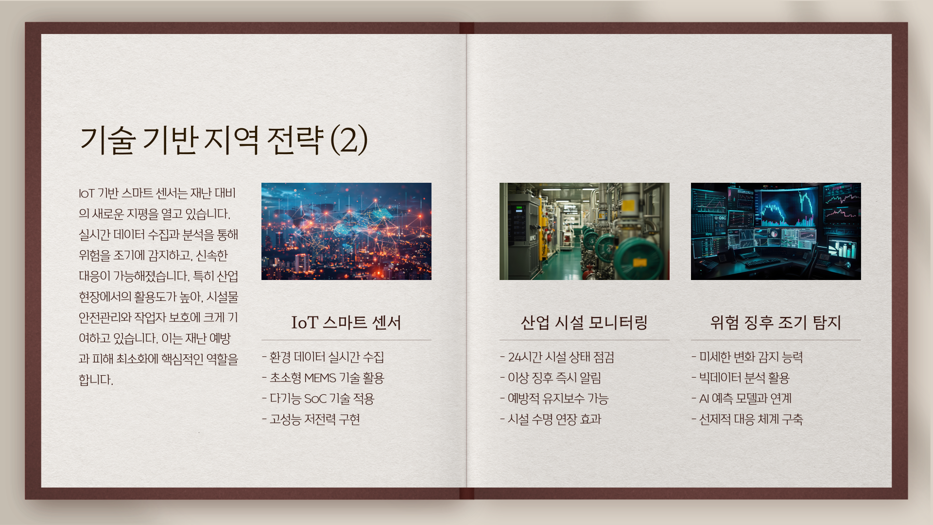| IoT 기반 스마트 센서 | 산업 시설 모니터링 | 위험 징후 조기 탐지 |