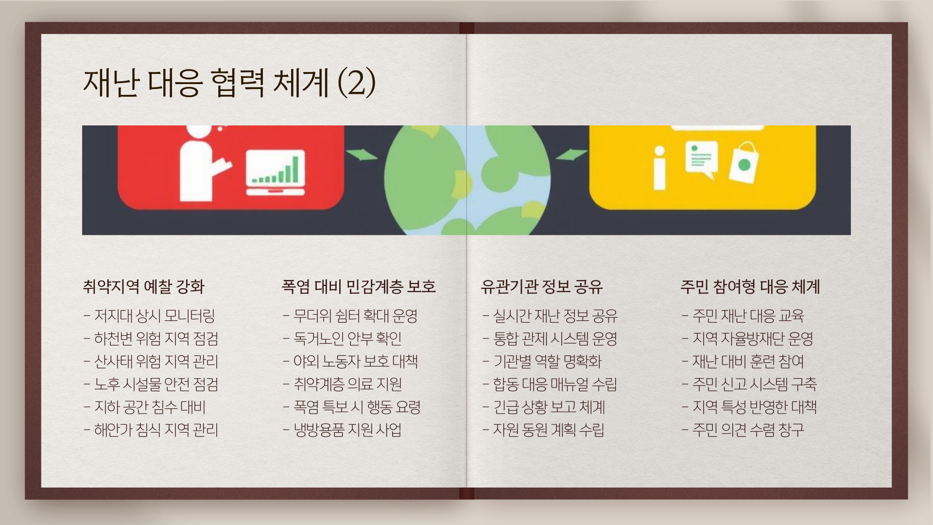 대구시와 목포시처럼 구체적인 대응 시스템을 갖추고 있는 지자체들이 점점 늘고 있어요. 인명 피해를 막기 위해 비상 시 구조대 투입부터 임시 대피소 운영까지 계획적으로 실행하고 있다는 점에서, 다른 지역도 참고할 수 있는 좋은 모델이죠.