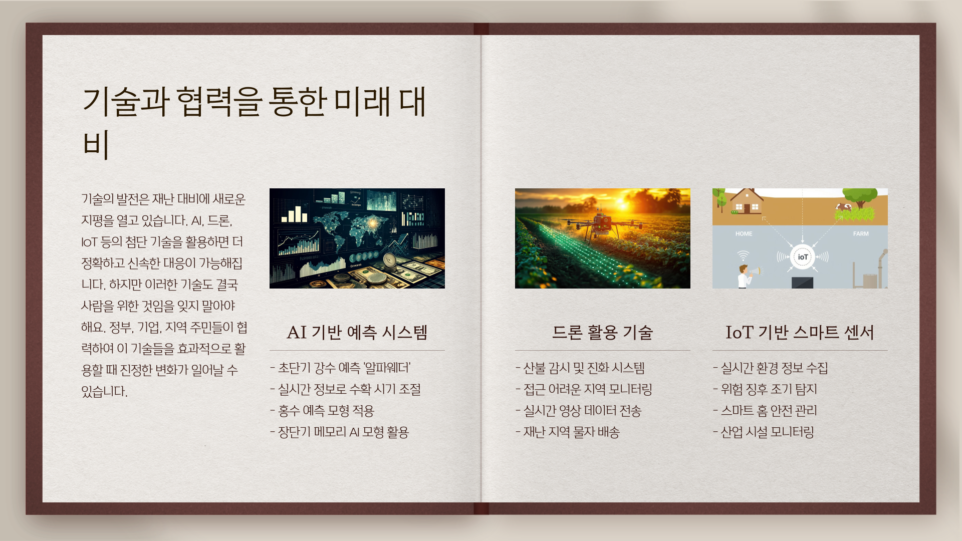 이러한 기술들이 제 역할을 하기 위해선 정부와 기업, 지역주민 간 협력이 중요해요. 미래지향적인 대응 전략을 수립하면서 기술 교육과 인프라 투자도 함께 이루어져야겠죠. 결국, 기술은 사람을 위한 것이니까요.