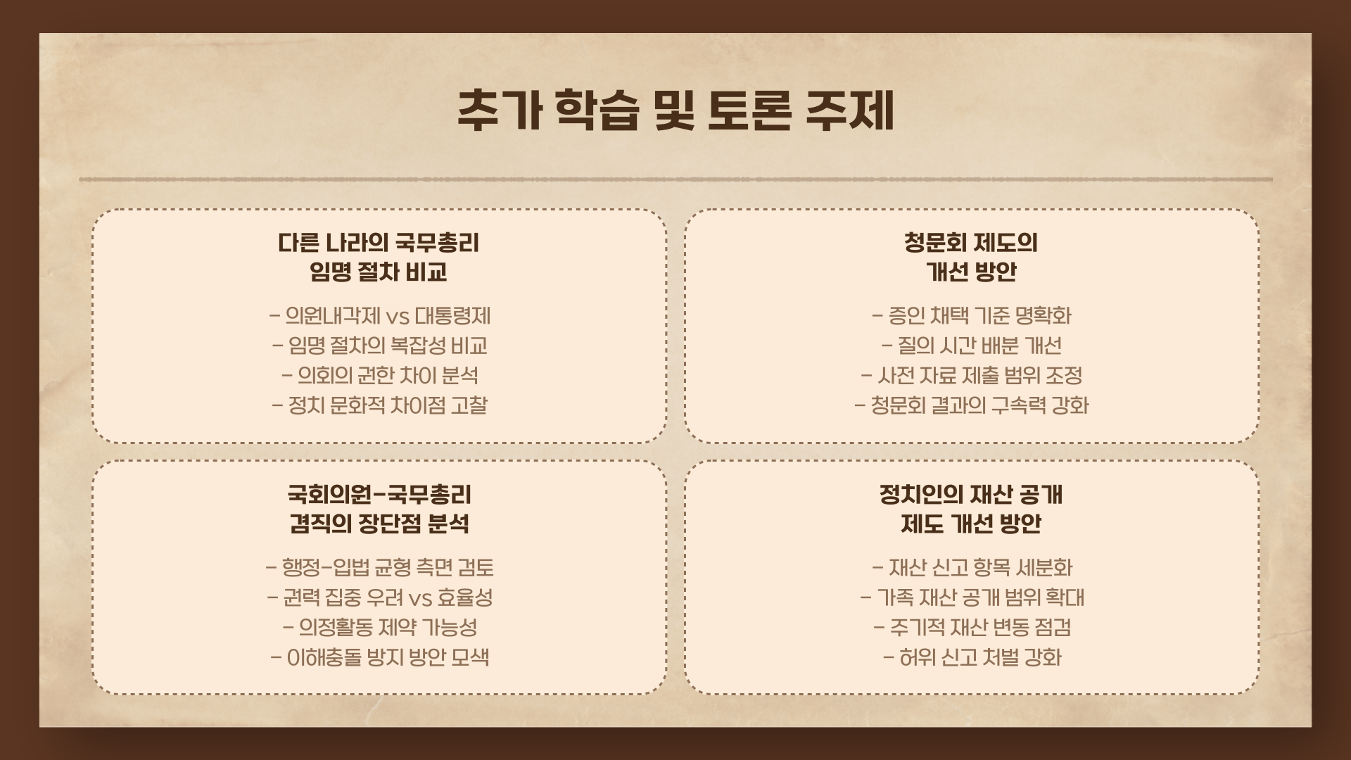 정치라는 건 멀고도 어렵게 느껴질 수 있지만, 알고 보면 우리 삶과 꽤 가깝게 맞닿아 있는 주제입니다. 국무총리의 임명 절차와 청문회 과정을 알면, 뉴스가 훨씬 선명하게 보일 거예요. 이 글이 여러분의 이해에 조금이라도 도움이 되었기를 바랍니다. 혹시 추가로 알고 싶은 내용이나 공유하고 싶은 생각이 있다면 댓글로 남겨주세요. 여러분의 참여가 더 나은 콘텐츠를 만드는 힘이 됩니다!
