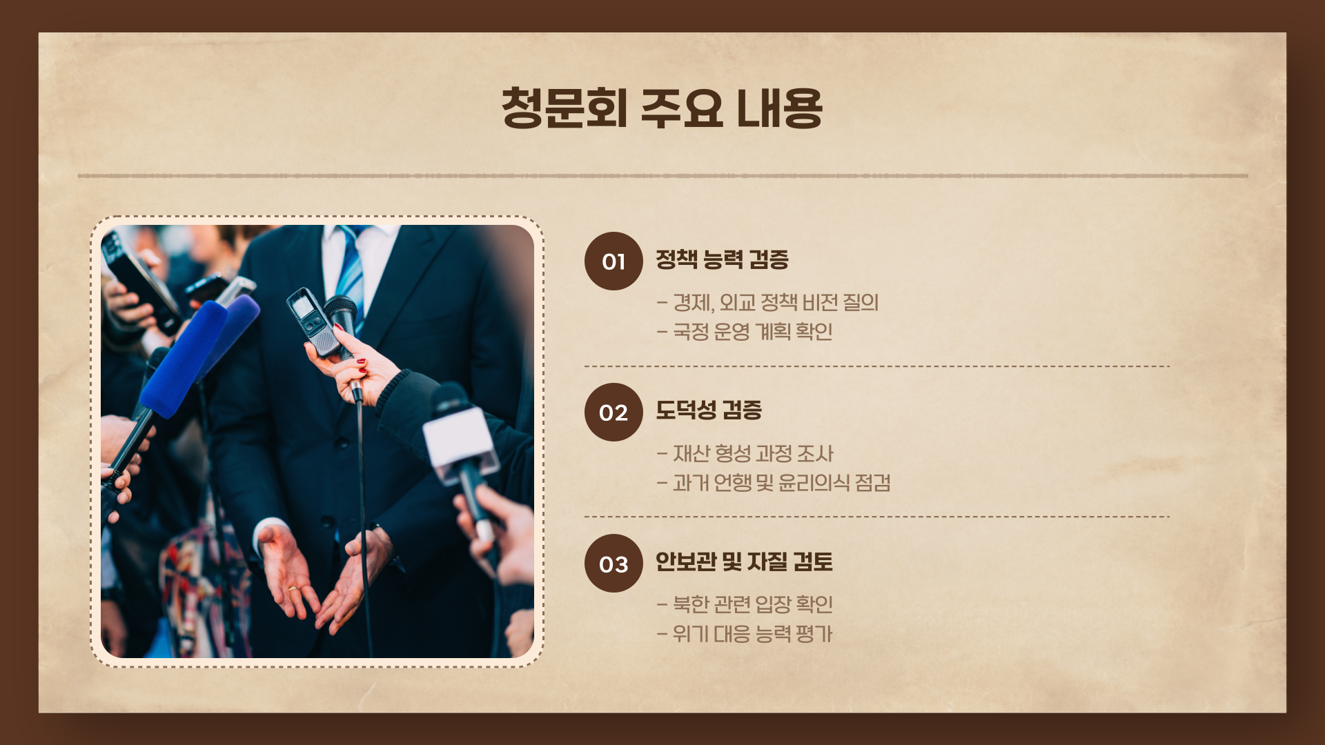 | 6월 24일 | 정책 검증, 안보관, 가족 문제 집중 질의 |