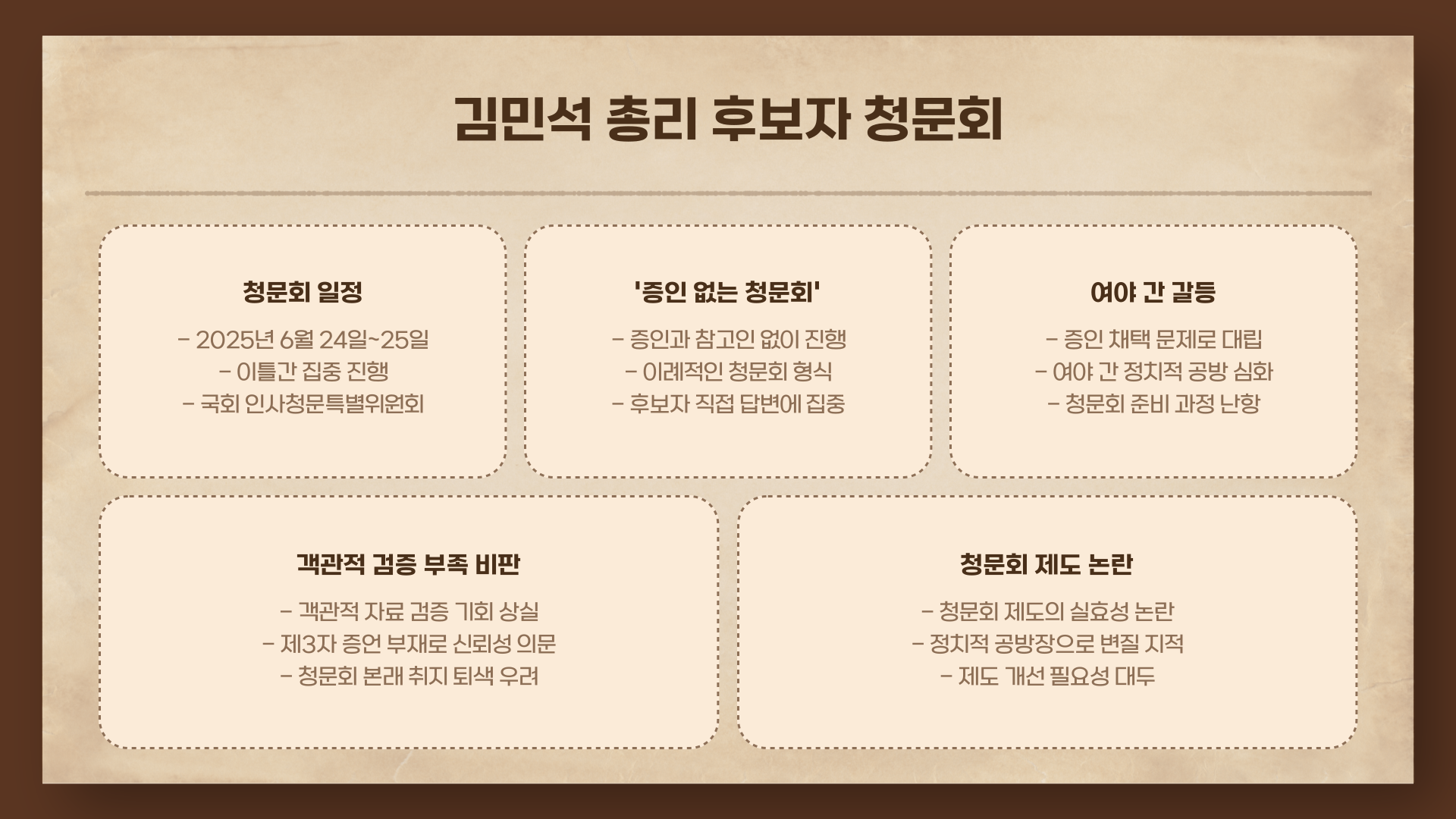 2025년 6월 24~25일, 김민석 총리 후보자의 인사청문회가 열렸습니다. 그런데 이번엔 조금 달랐어요. 여야가 증인 채택 문제로 대립하다 결국 ‘증인 없는 청문회’로 진행된 겁니다. 전례가 드문 상황이었죠. 객관적인 자료 확보에 한계가 있다는 점에서 제도의 실효성 논란도 커졌습니다.