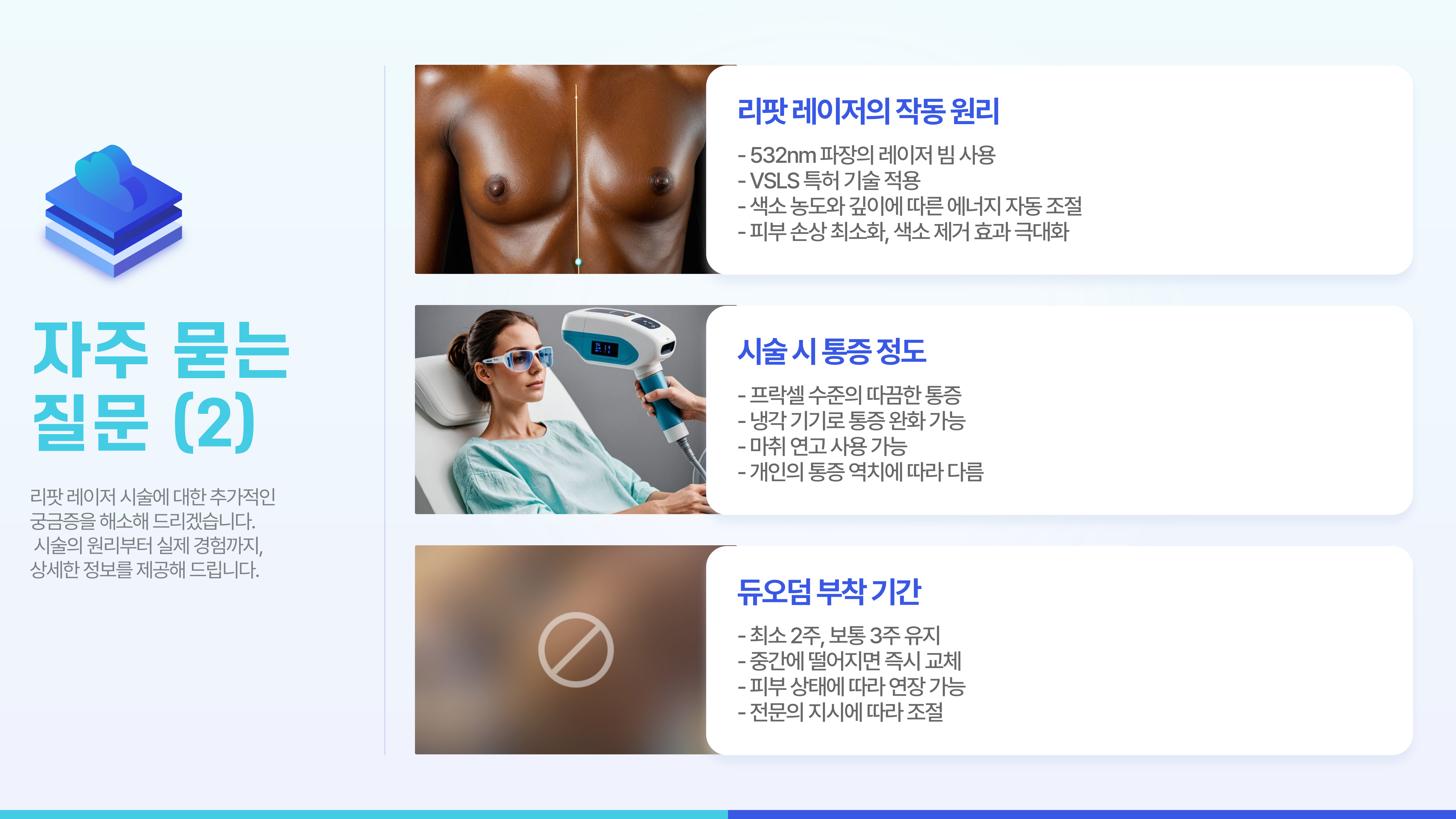 회복 속도와 결과를 좌우하는 건 바로 사후 관리! 시술 후 3일간은 자극 최소화, 그리고 2~3주간은 듀오덤, 재생 연고, 자외선 차단이 필수예요.