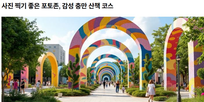 - 아치형 구조물, 꽃과 나비의 조형, 분수대 등 체험형 구성
