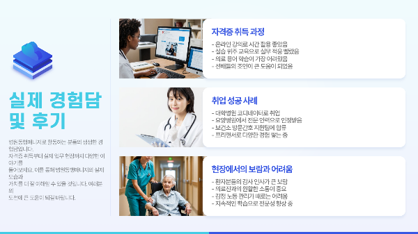 - 요양원, 재활센터, 실버타운 등 다양한 취업처