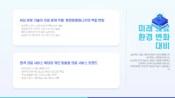 | 행정 지원 | 진료 예약, 서류 작성 및 제출 대행 |