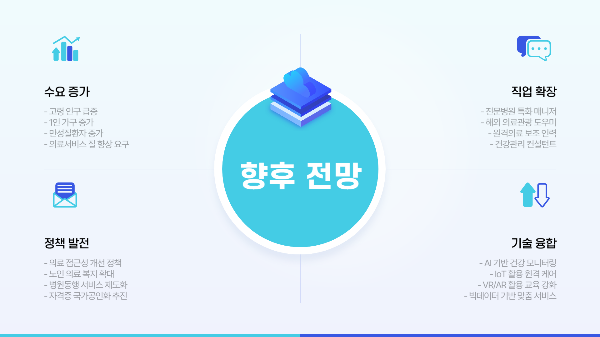 고령화로 인한 수요 증가로 매우 밝은 직업 전망을 가지고 있습니다.
