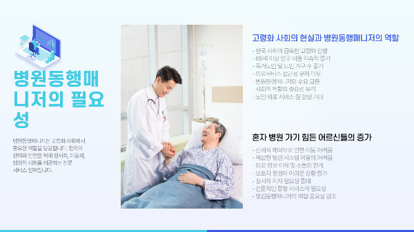 고령화 사회, 혼자 병원 가기 힘든 분들을 위한 따뜻한 직업, 병원동행매니저! 그 자격증, 지금 도전해보세요.