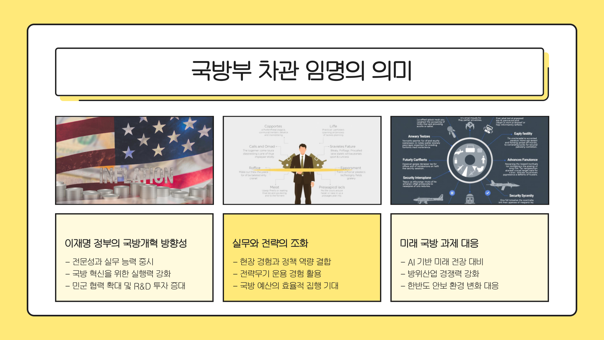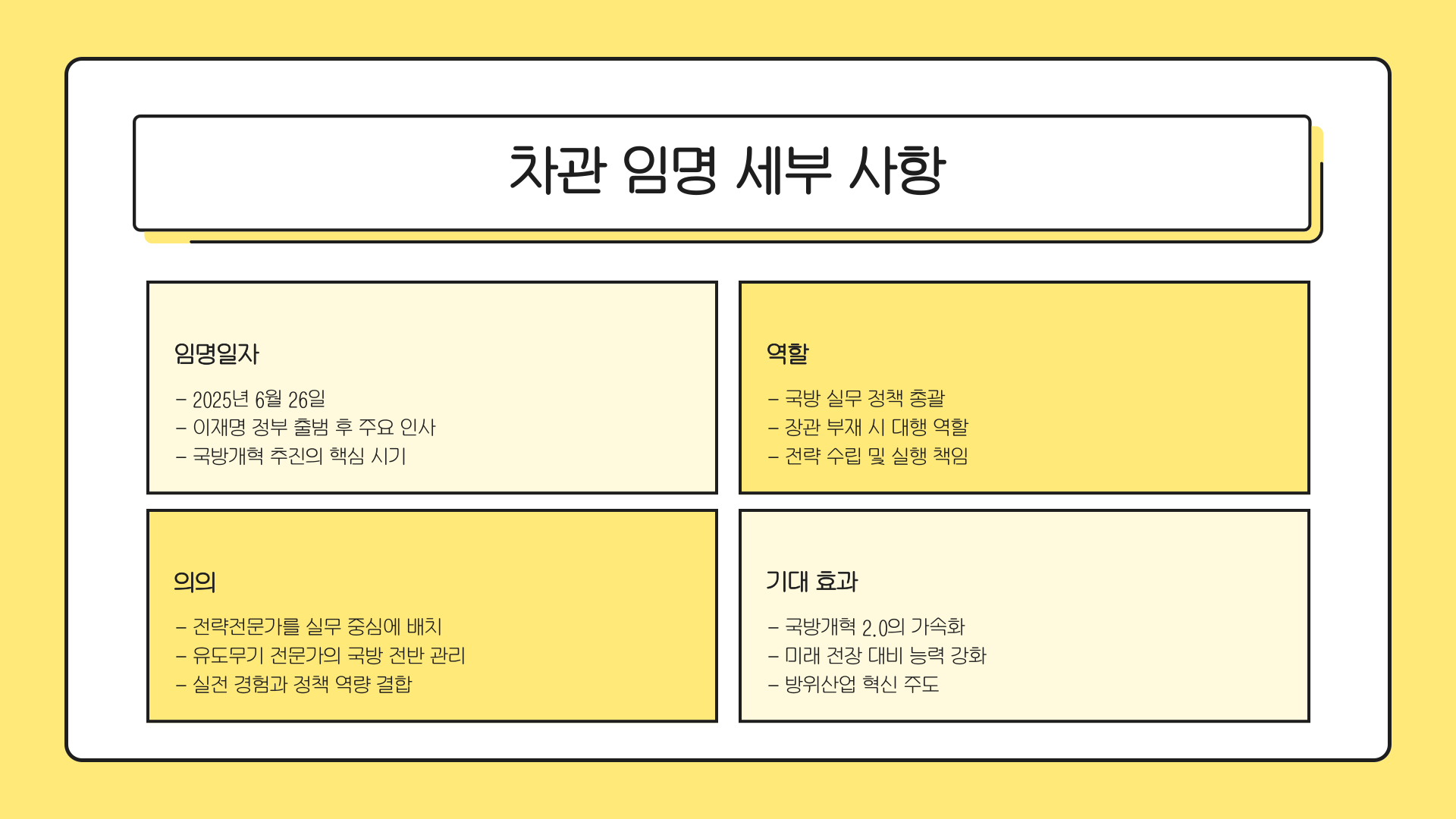 이번 임명은 이재명 정부가 추구하는 국방개혁의 방향성을 보여줍니다. 실전적 전문성과 정책역량을 모두 갖춘 인물을 국방부의 실무 수장으로 세운 것이죠. 전략무기, 예산기획, 전력 강화 등 앞으로의 과제들에서 중심축 역할이 기대됩니다.