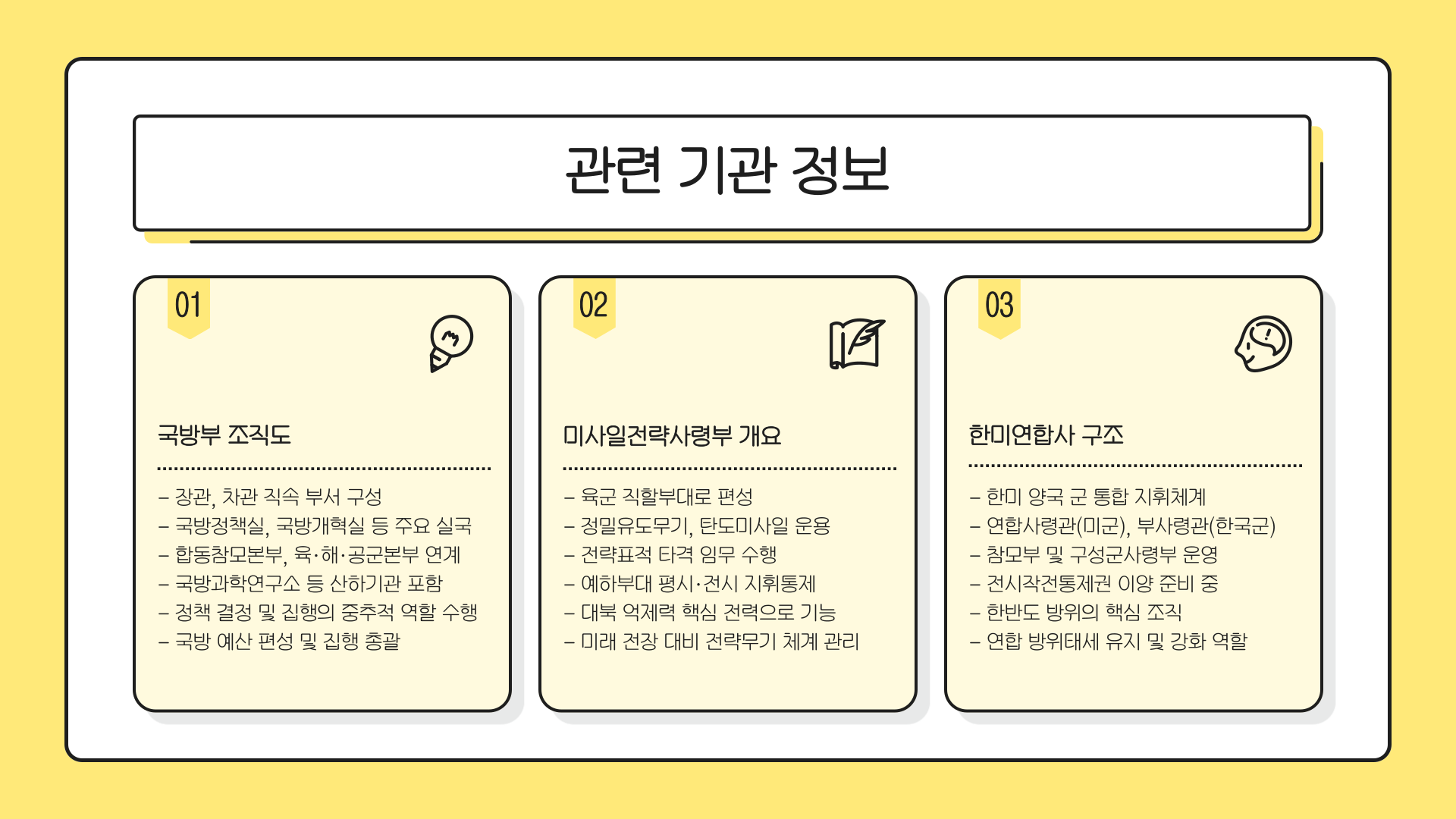 | 정밀유도탄, 탄도미사일 | 대북 억제력 및 전면전 대비 작전계획 수립 |