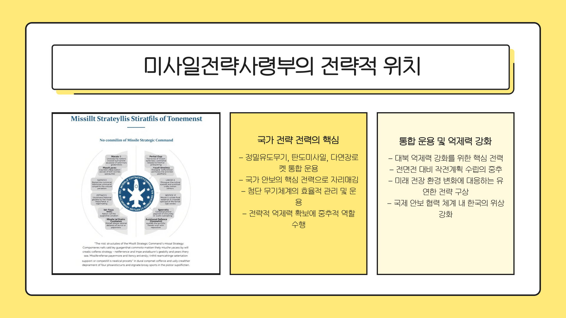 정밀유도탄, 탄도미사일 등 국가 전략자산을 통합 운용하며, 작전계획과 전시 억제 전략의 핵심적 기반이 되는 조직이기 때문입니다.