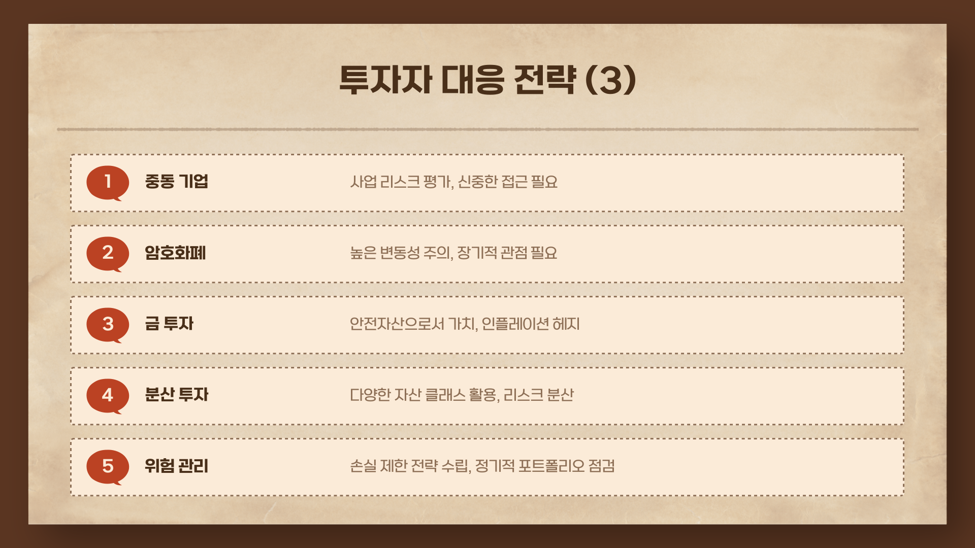 변동성이 심화되는 시기에는 감정적인 대응보다 전략적인 시각이 필요해요. 아래는 위기 상황에서 고려할 수 있는 주요 투자 전략이에요.