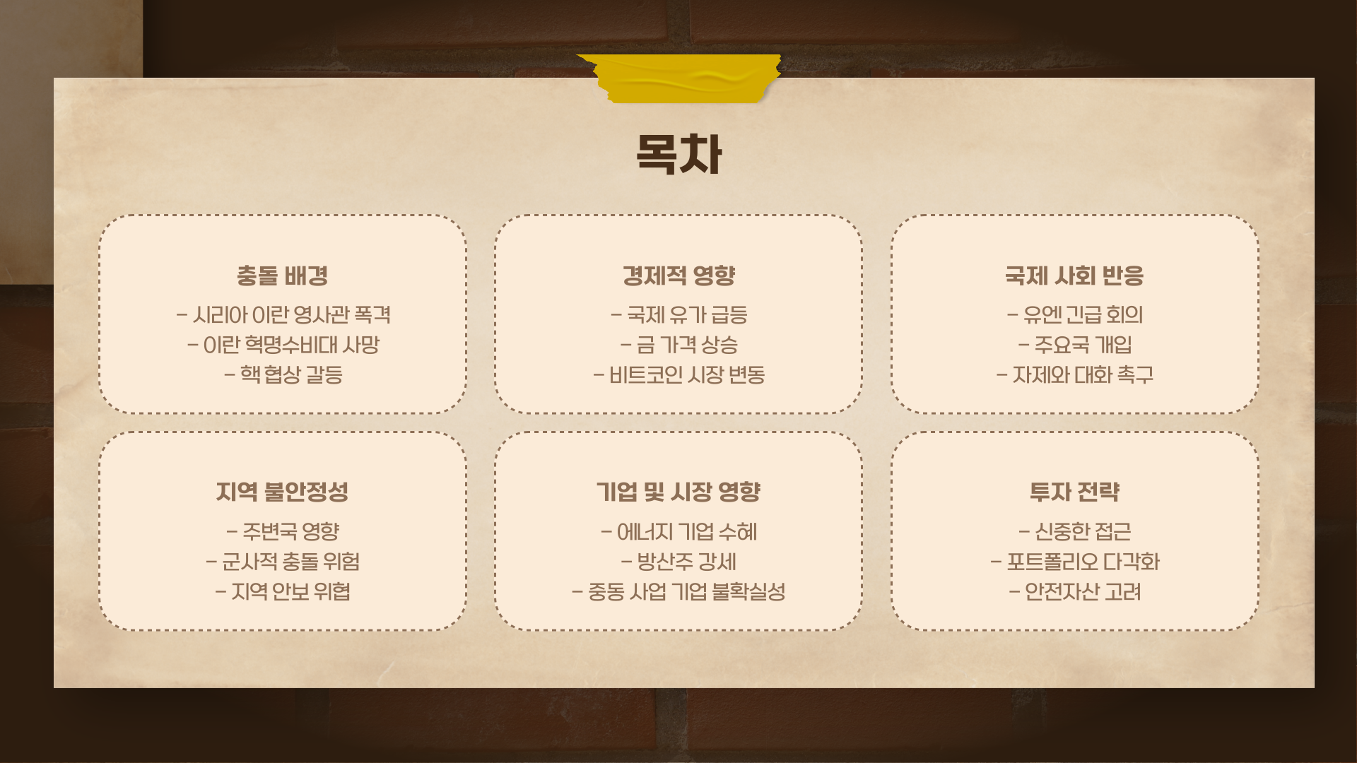 중동 지역에서 일어난 이스라엘과 이란의 충돌은 단지 뉴스 한 줄로 끝날 수 없는, 우리 일상과 투자에 영향을 미치는 큰 사건이에요. 금값, 유가, 비트코인 등 다양한 시장이 요동치는 지금, 우리는 더욱 신중하고 유연하게 대응해야 하겠죠. 앞으로도 이런 글로벌 이슈에 대해 깊이 있는 분석을 이어갈 테니, 함께 지켜봐 주세요. 댓글로 여러분의 생각도 들려주시면 정말 좋겠습니다. 함께 고민하고, 함께 성장하는 블로그가 되었으면 해요!