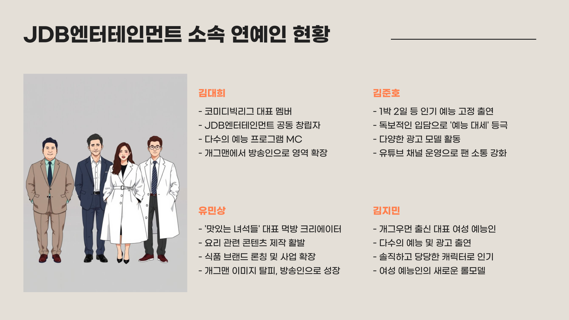 JDB 소속 연예인 구성 살펴보기