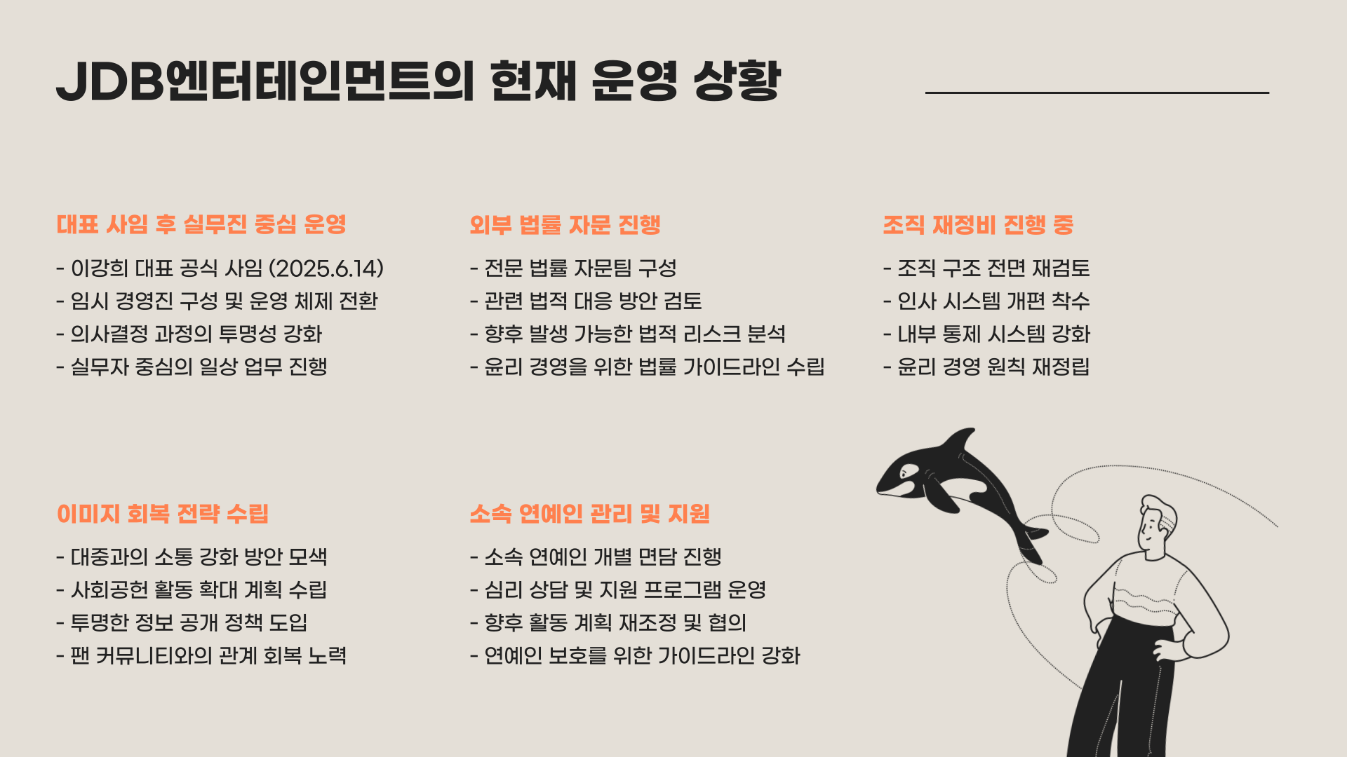 논란이 불거진 직후 JDB엔터테인먼트 측은 빠르게 입장문을 발표했지만, 여론은 이미 등을 돌린 상태였어요. 결국 대표는 사임 의사를 밝혔고, 이후 내부 혼란 속에서 조직 운영은 실무진 중심으로 재편되었습니다. 아래는 사임까지의 흐름을 정리한 목록입니다.