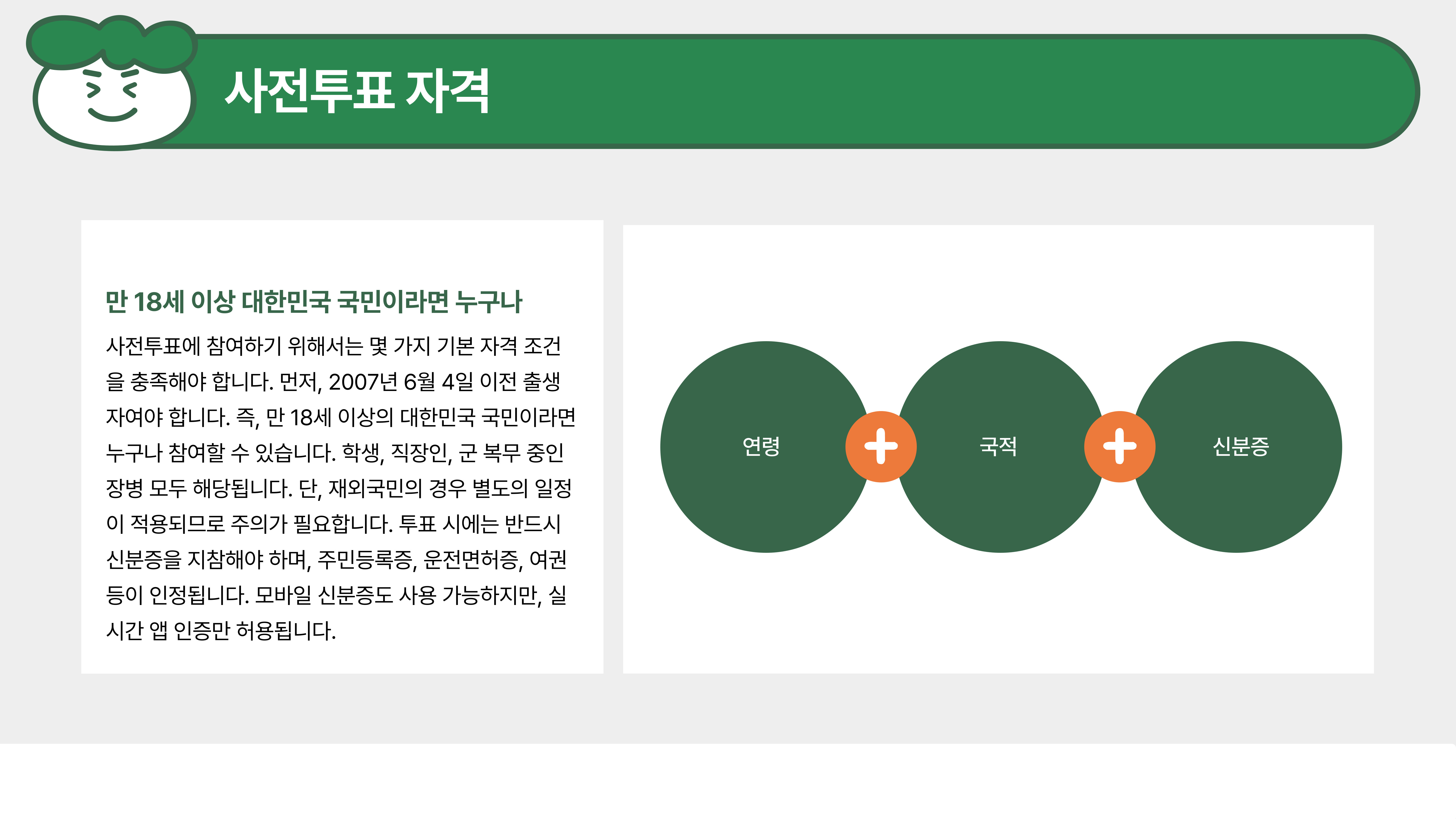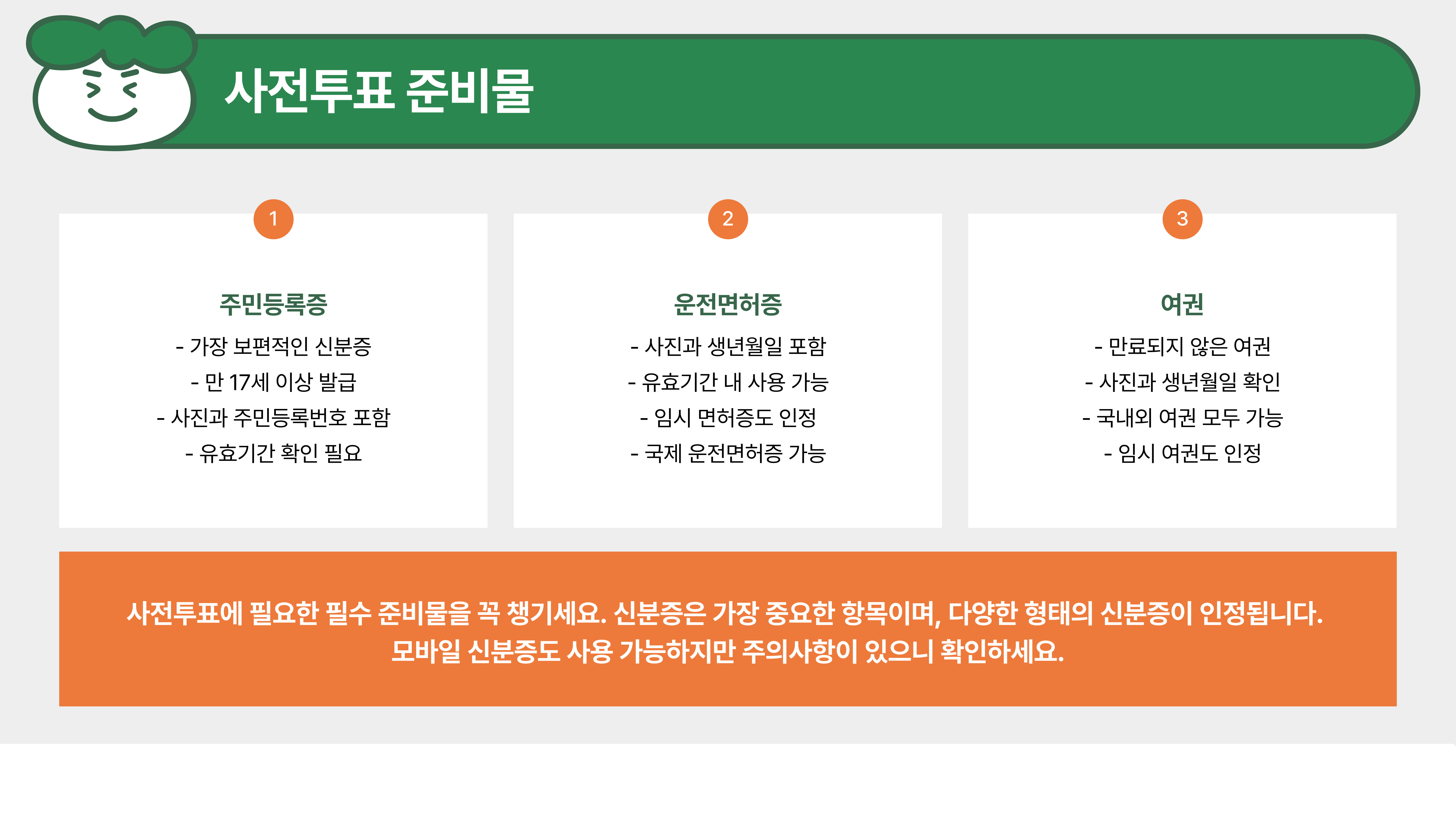 사전투표를 위해 꼭 챙겨야 할 것이 있어요. 가장 중요한 건 신분증입니다.