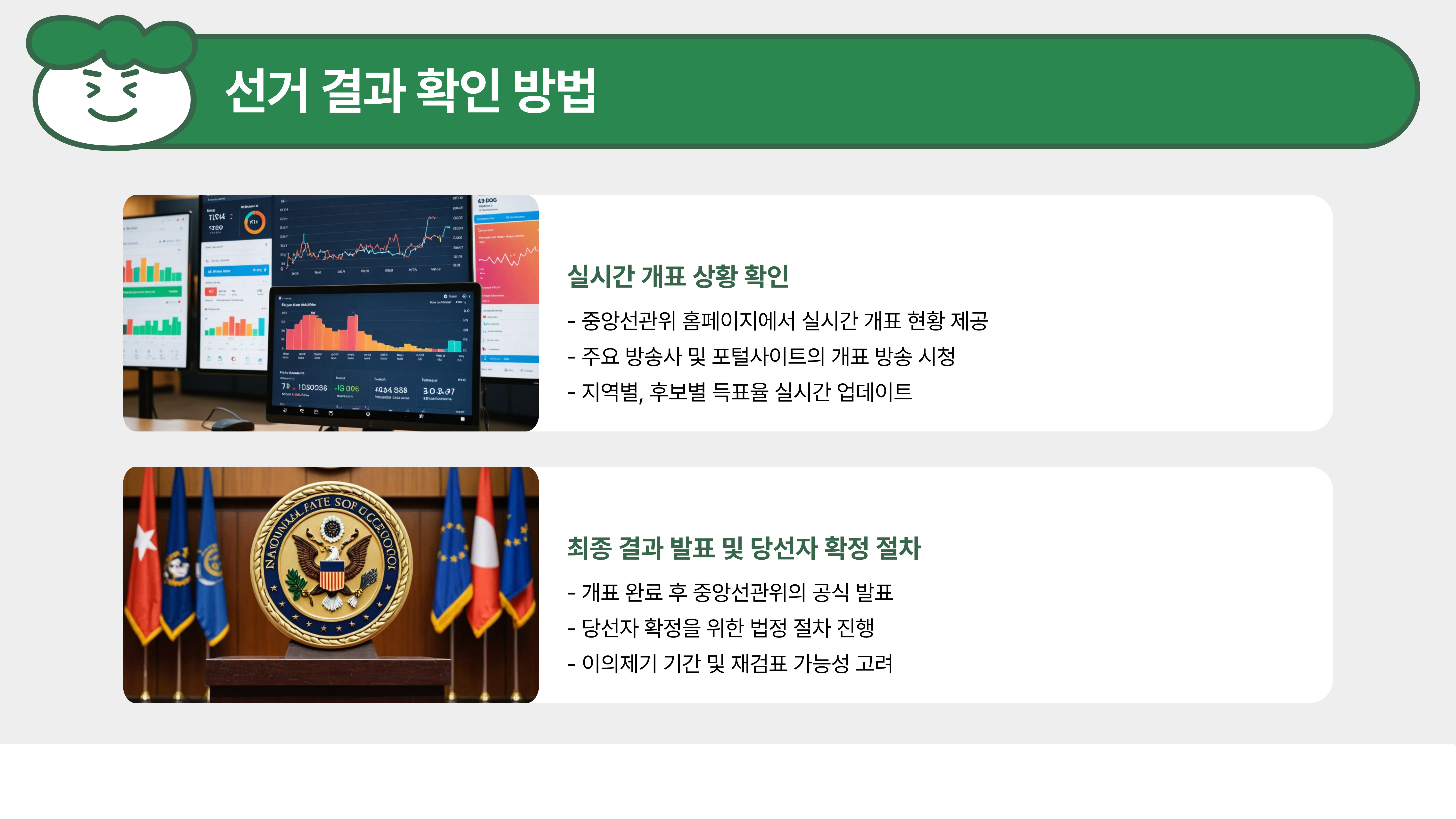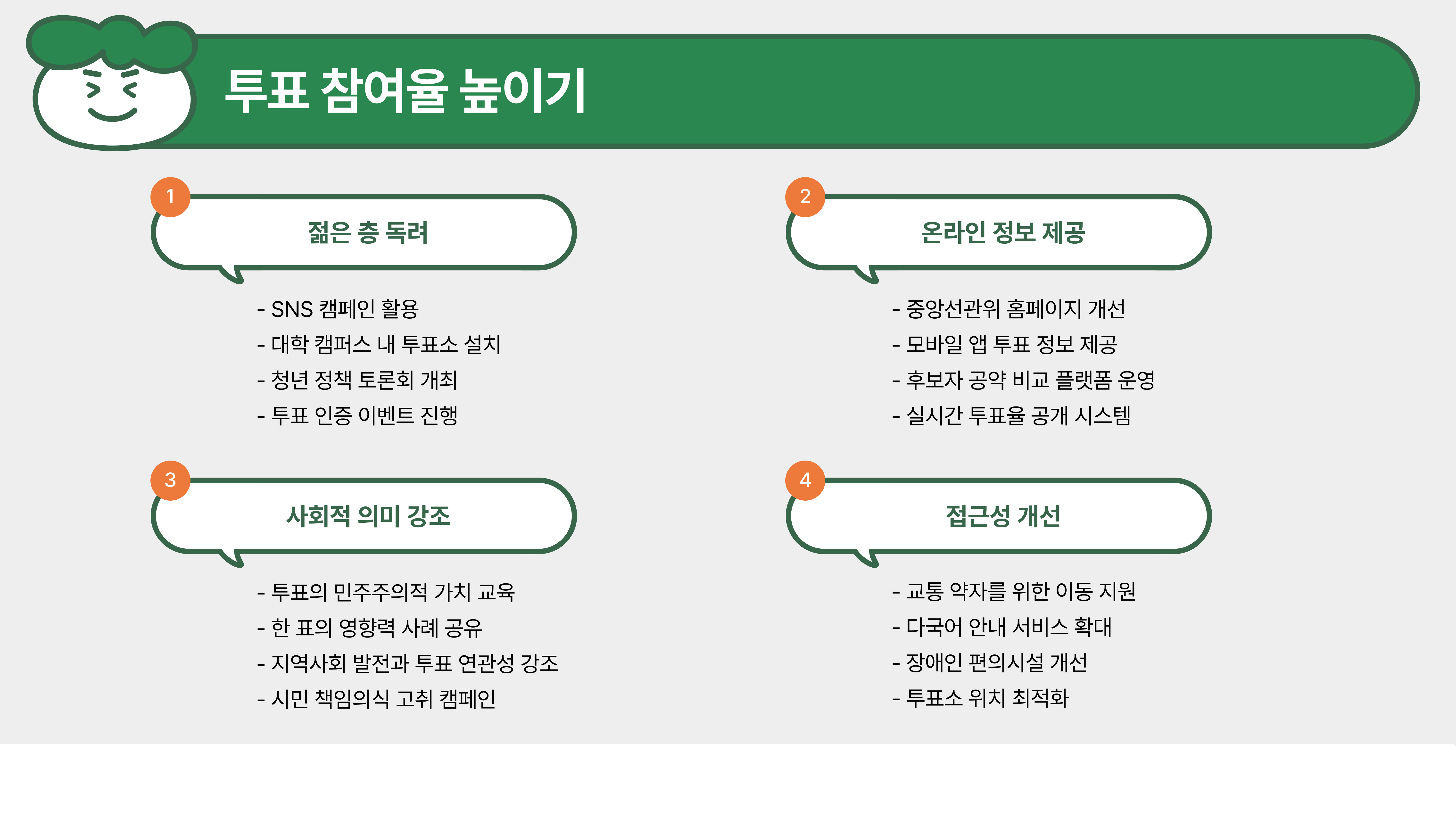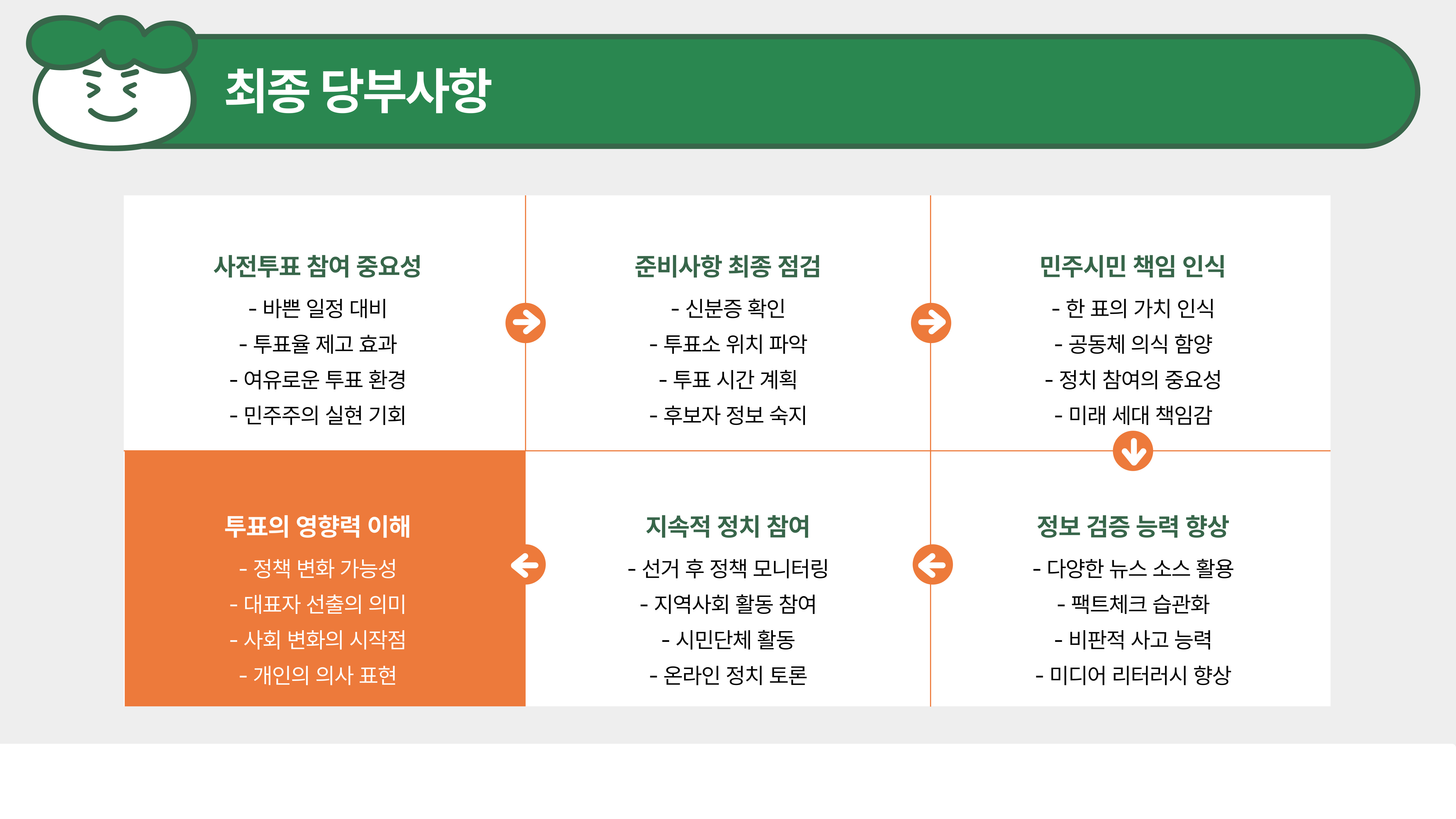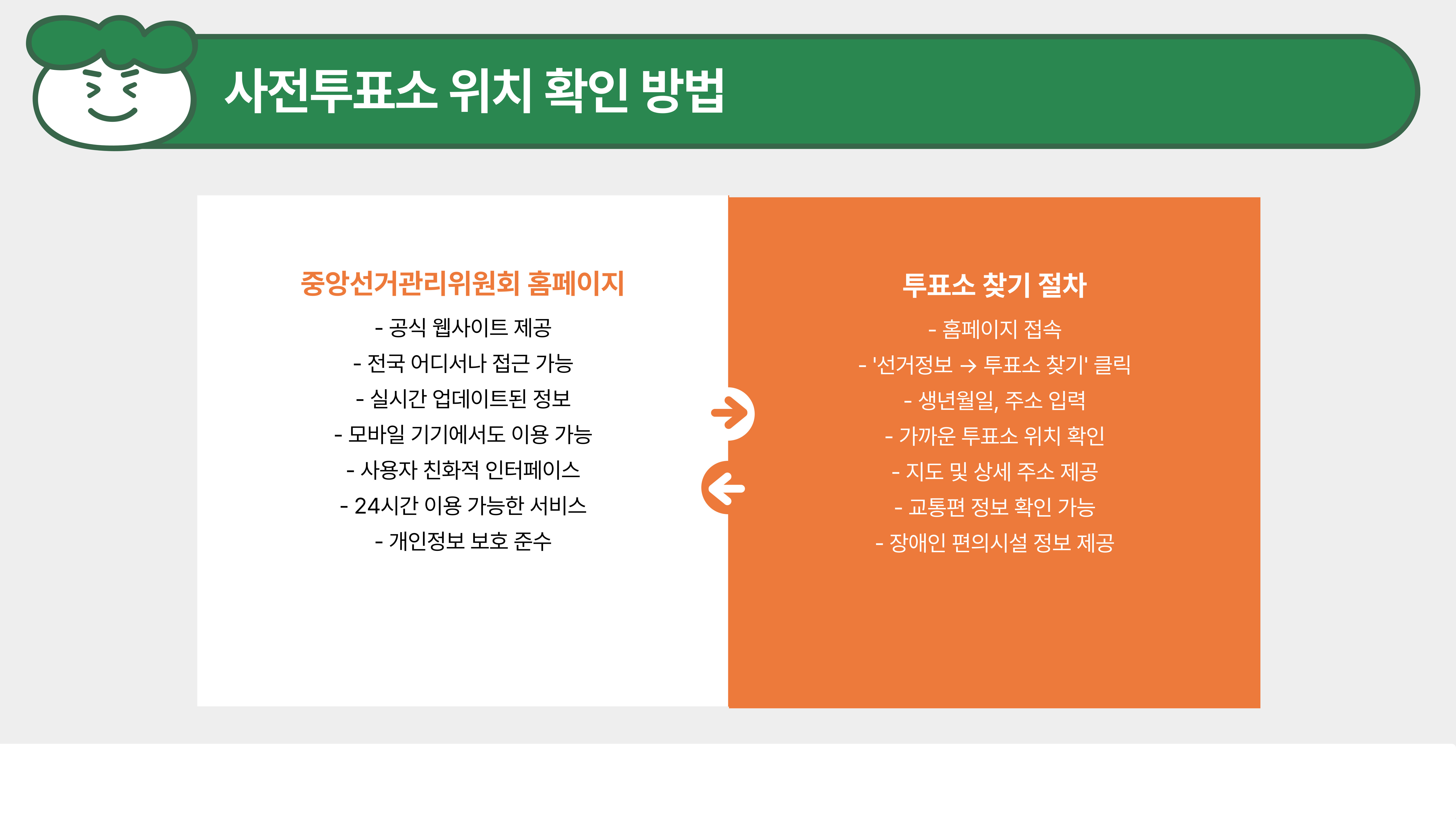 - 투표 전 후보자 공약을 정리해 두면 빠르게 선택 가능!